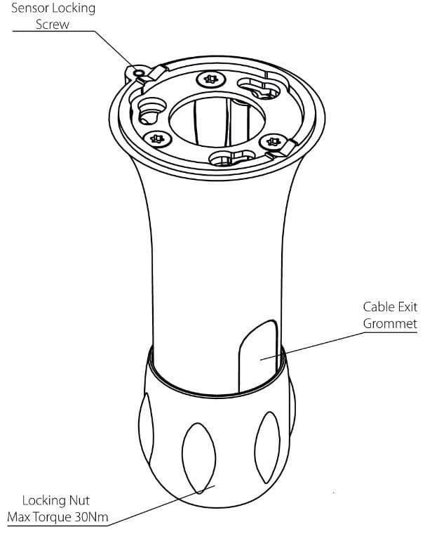 4. Secure the Pole Mount into place using the Locking Nut. The locking nut can be tightened by hand, or by using a 42mm A/F spanner, Max torque used not exceed 30Nm.