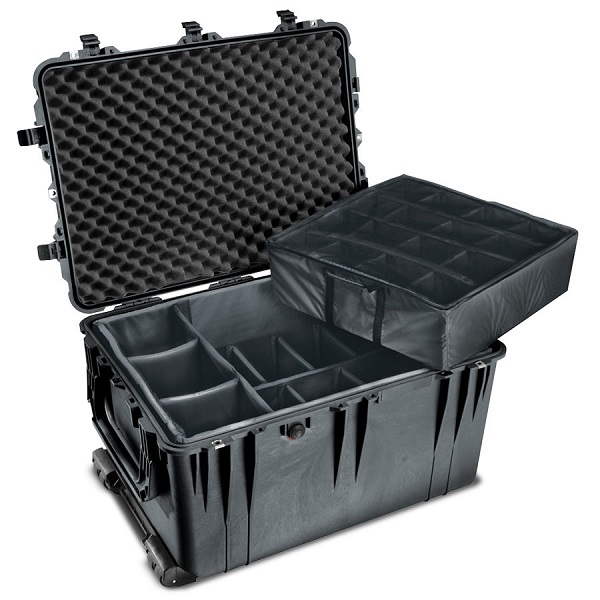 The padded divider set provides additional protection for items stored in the 1660 Pelicase. The divider set can be used instead of the pick-n-pluck foam and provide defined spaces that are adjustable interior dividers with velcro, allowing easy placement and adjustment to suit equipment. The divider set includes the 1660 foam lid to ensure equipment is still protected from the lid.