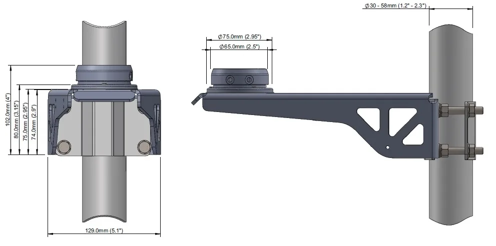Bracket for mounting to pole and wall. Includes adaptor for WindObserver and installation kit. The Bracket uses a mounting clamp suitable for attaching to a vertical pipe with a diameter of 30-58mm. When mounting the WindObserver, consider the position, orientation and alignment of the unit. Mount at the top of a Pipe to ensure a clear unobstructed measurement view.