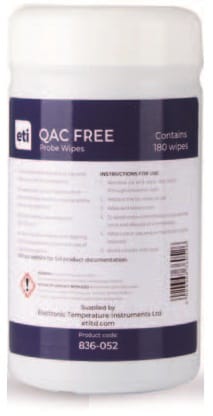 6 Tube of 180 Probe Wipes. Wipes measure 130 x 130mm. Anti-Bacterial, effective against Listeria and Salmonella.