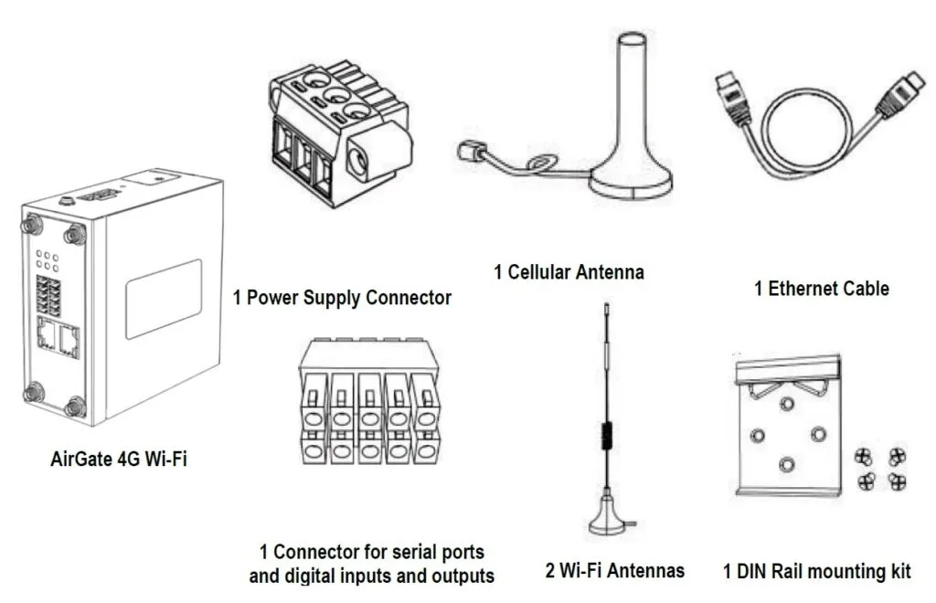 AirGate 4G has Wi-Fi and two Ethernet ports, which offers excellent flexibility and connectivity. The AirGate 4G fits to DIN rail and has external magnetic antennas, simplifying the installation on panels. AirGate 4G also simplifies the device access architecture, no longer requiring PLCs or SCADA systems to manage the network. The AirGate 4G Wi-Fi is designed to be used as an IoT platforms, guaranteeing secure data communication via MQTT protocol. According to the specific needs of the application, it ensures that remote access is performed securely and efficiently.