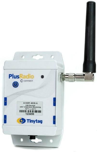 Tinytag Radio Receiver Unit only. Internal buffer memory for up to 45 hours, 90mm stub antenna user replaceable akaline battery size AA (x2) powered via the USB port, Operational temperature range: -15