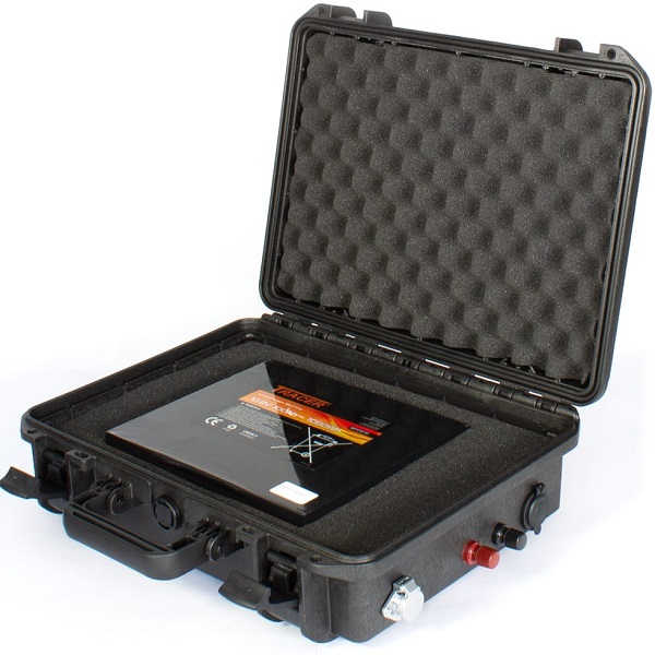 The Tracer Lithium-Ion Carry Case Kit is an IP64 rated robust portable power solution for various power needs. The pelicase includes a 12V cigarette lighter socket (Rated 10A), Two 5V USB sockets (2.1A and 1A), CH2F chassis mounted charge/discharge socket (Rated 20A) and 20A rated terminal posts. The protective Peli™ Case kits are supplied as a kit with a charger and bare ends lead, these carry case kits boast multiple outputs as listed below: