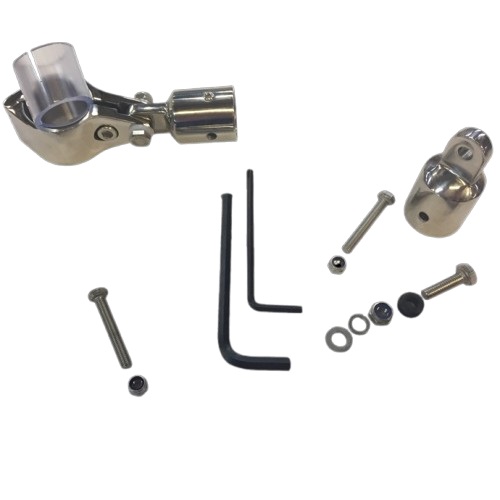 Hardware for a single solid stays kit. Kit includes: 1 Hinged Pushpit Clamps to fit 25-32mm Rail incl. rubber insert; 2 End caps for 1 stay and fixings. Choose 2 of these to custom make your stays kit with your own lengths of 22mm diameter tube.