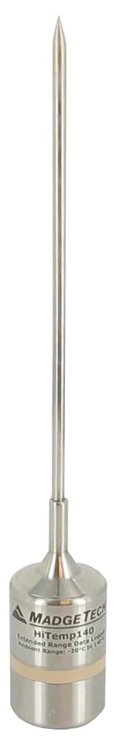 Submersible Datalogger with a low profile 316 stainless steel enclosure. Temperature Range: -40 to +150°C from a 100 ohms Platinum RTD with a resolution of 0.01°C. Internal Memory 65,536 readings, sample rate 1 second up to 24 hours and 2 year battery life. Operating Environment -40 to +140°C, 0 to 100%RH. Dimensions Body: 1.75 inch x 0.97 inch diameter. (44.45 x 25mm). Probe: 5.25 inch x 0.125 (0.188 inch transitional) diameter (133.35 x 3.2mm (4.8 transitional)).