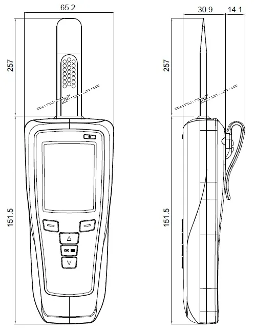 HygroPalm GTS handheld relative humidity and temperature instrument with strong, lightweight Aluminium sword probe. Measuring range 0-100% RH & -0 to 60°C. Internal Logger suitable for 8 x 8,000 data points with logging intervals of 1 second to 24 hours. Rechargeable 3.7V Lithium Polymer Battery, capacity 1,000mAh. Dimensions 408 x 63 x 30mm. Supplied with soft case and micro USB cable.