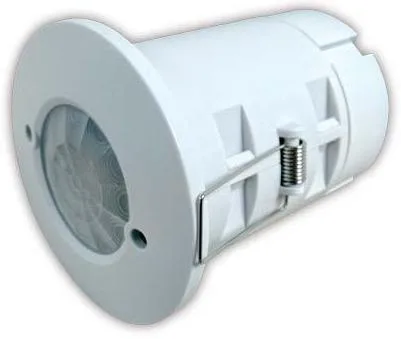 The switching point and time delay are set by concealed adjustment potentiometers behind the lens bezel. In normal operation, the lights will only be switched on when the room is occupied and the light levels are below the desired level. Note, when the LUX control is at maximum the lights will always come on with occupancy.