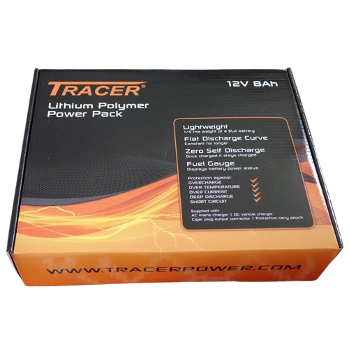 Tracer Lithium Polymer (Li-Po) Battery Packs offer a tremendous advantage over traditional sealed lead acid batteries: LiPo battery packs are a ¼ of the weight of traditional sealed lead acid batteries; Lithium polymer technology gives a very flat discharge curve which means sustained power to the end of the cycle; and the non slip rubber and ABS construction provides excellent grip and impact protection.
