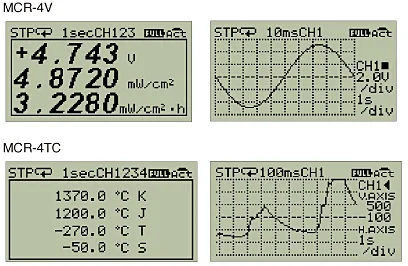 - Large Capacity Internal Memory, MCR-4V can log up to 480,000 data readings, and the MCR-4TC up to 960,000