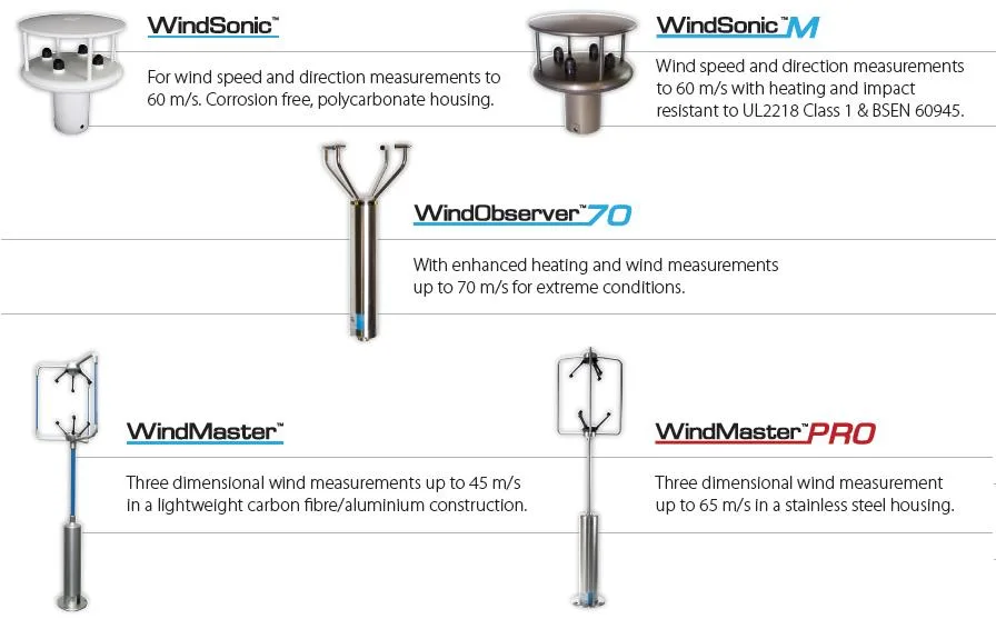 - Wind Speed & Direction Measurement (Integrated WindSonic or External WindSonic, WindObserver or WindMaster.