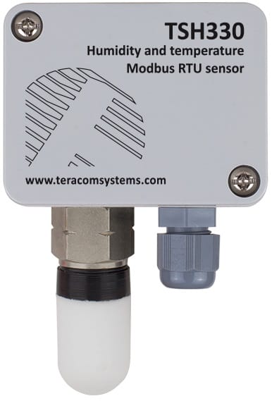 The TSH330 is an IP54-rated temperature and humidity sensor designed for robust environmental monitoring, communicating via an RS485 interface and supporting the Modbus RTU protocol. It employs a unique capacitive element for relative humidity measurement and a bandgap element for temperature, both seamlessly coupled to a 12-bit analogue to digital converter for superior measurement quality. Its IP54 rating makes it an ideal choice for applications requiring protection against dust and water splashes. When paired with Teracom’s Ethernet or cellular controllers, the TSH330 provides an excellent solution for reliable temperature and humidity monitoring in demanding environments.