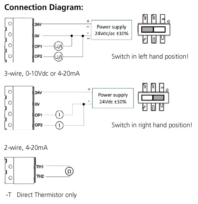 - 4-20mA, 0-10vDC (5V Options) Outputs (link selectable)