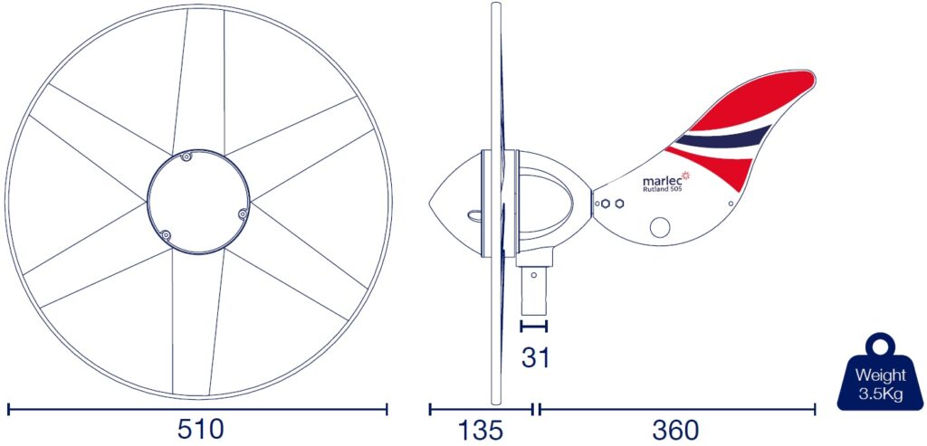 The Rutland 505 “e-furl” Windcharger includes enhanced wind tracking for maximum efficiency, which combined with a more efficient generator design, provides 20% higher energy output that the Rutland 504. It is suitable for land, or marine, based applications, with mounting kits available for land and marine mounting. When activated the “e-furl” puts the turbine through a cycle of slowing down and speeding up periodically thus reducing the stresses on the turbine and tower. When storm winds are forecast and where possible the turbine can be restrained to minimise wear and tear. When structural damage to properties etc is forecast the turbine must be restrained.