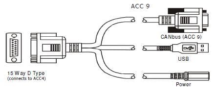 Digital Lead Adapter (Length 1m) 15 Way D type (female) to CANbus and Power Connector. For connecting SGR/RWT to PC via CANbus (Option H). Also needs Digital Lead (ACC4) to connect to SGR/RWT