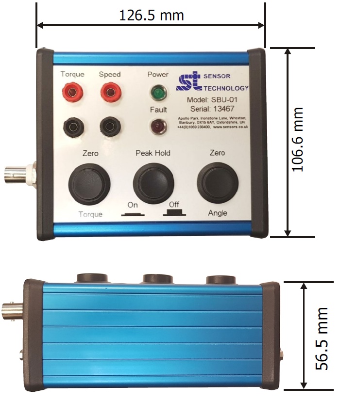 The SBU-01 Transducer Signal Breakout unit can be use with any SGR, ORT and RWT transducers. The unit provides easy access to all the transducer functions including Analogue outputs, RS232, USB and the optional CANbus comms. Users can also zero the transducer with the SBU-01, and it provides indication of transducer operational status.
