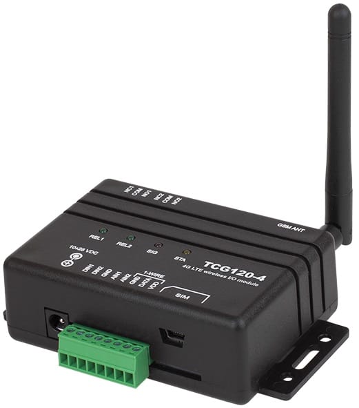 The Teracom TCG120 is a wireless I/O module designed for robust “last-mile” communication. It ensures reliable connectivity with versions supporting 4G, 3G, and 2G (GSM-GPRS) networks, automatically adapting to available coverage. If needed, you can manually select the network during setup. For inputs and outputs, it includes two digital inputs, two analogue inputs, and two relays with both normally open and normally closed contacts. Additionally, it features a 1-Wire interface that supports up to four Teracom sensors, expanding its monitoring capabilities.