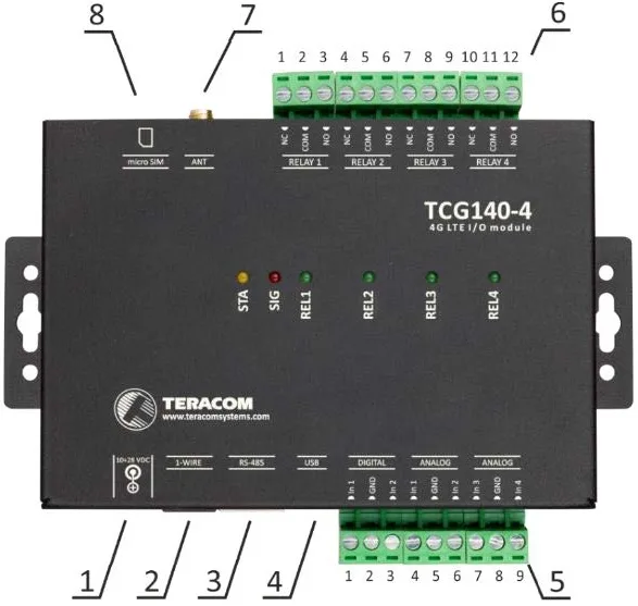 • 1-Wire interface for up to 8 Teracom sensors