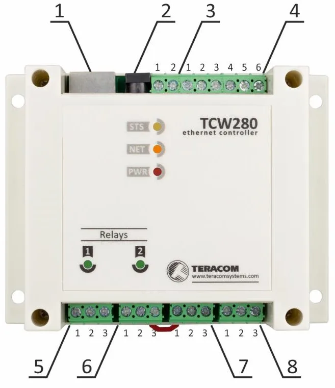 For control and automation, the TCW280 module integrates two relays with Normally Open and Normally Closed contacts, which can be remotely controlled via the web interface or through M2M protocols like SNMP, HTTP API, and Modbus TCP/IP. A sophisticated scheduling system allows for the definition of four distinct schedules for one-time or recurring weekly events, with a timing resolution of 100 milliseconds. The onboard RTC, synchronized with network time servers, ensures accurate timing for the automatic activation of both the relays and digital outputs according to the configured schedules.