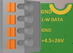 Communication with the TSH230 occurs via a 1-Wire bus, and each sensor is uniquely identified with a 64-bit serial code, enabling the use of multiple sensors on the same bus. The digital sensor is housed in a durable IP65-rated enclosure, providing significant protection against dust ingress and water sprays from any direction. Installation is simplified by a cable gland with a locknut and a screwless terminal block, ensuring secure and straightforward wiring.
