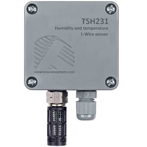 The TSH231 is the new version of the TSH230 Splashproof sensor designed for measuring both temperature and humidity, utilising a 1-Wire interface. It employs a specialised capacitive element for accurate relative humidity readings and a band gap element for temperature measurements. These sensing components are integrated with a precise 12-bit analogue to digital converter, ensuring high-quality and reliable environmental data. When used in conjunction with suitable Ethernet or cellular controllers, the TSH231 becomes an excellent solution for humidity monitoring in environments demanding IP54 level protection against splashing water.