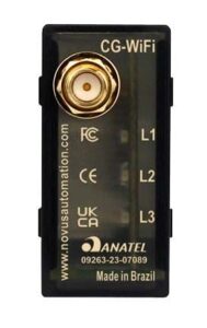 CG-WiFi ClickNGo Module, RP-SMA Female Connector for 2.4GHz WiFi Antenna. Provides a Wireless Modbus TCP/IP or MQTT Protocol Interface to a local WiFi Network. Operating Temp -20 to +60°C, 80%RH. Dimensions: 53.1 x 42.1 x 22.2mm, Weight: 30g. IP50 when installed in controller...