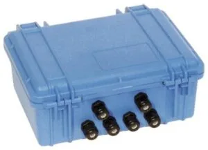 Weatherproof enclosure, with hinged cover, and continuous neoprene seal. 6 feed through cable glands. One gland used for captive interface cable allows connection to Pocket Logger without opening case. Cable end has a watertight cap and will mate with IC209 Interface Cable. Dimensions 208 x 165 x 90 mm...