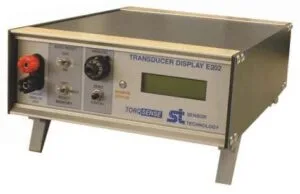 E202 Advanced Optical Torque Interface. Automatically detects any E200 transducer and configures display and +/-5V analogue output for E200 s full scale range. Torque and RPM are displayed along with computed power on the display screen. A test button and dial lock potentiometer allows the user to zero the torque..