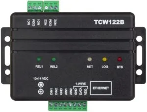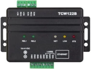 TCW122B-CM is a remote IO control module. It has two digital and 2 analogue inputs, plus 1-wire sensor support for temperature and humidity sensor. Two relay outputs for remotely switching devices (offering both normally open and normally closed wiring options). The controller can be used as a standalone device or..