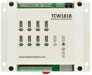 The TCW181B-CM is an 8-channel Ethernet digital IO module manageable via web interface, SNMP, and HTTP/XML API. It has 1 digital input and 8 relay outputs for remotely switching devices (offering both normally open and normally closed wiring options). The controller can be used as a standalone device or as..