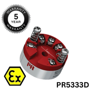 PR 5331D3B 2-Wire Programmable Transmitters. Inputs: -12 to 800mV; RTD (2, 3 or 4 Wire) Range -200 to +850°C; Thermocouples (Type B, E, J, K, L, N, R, S, T, U, W3, W5, Lr); Linear Resistance – 0 to 5000Ω. Output: 4-20mA. Accuracy ≤±0.05% of span. Response Time: 1 to 60 Seconds. Power Supply 7.2-30vDC @ 0.7W Max. 1.5kVAC Galvanic Isolation. Namur NE21, NE43. Approvals: ATEX, IECEx, FM, CSA & INMETRO; DNV & EAC Ex ...