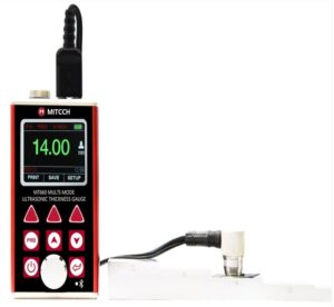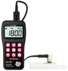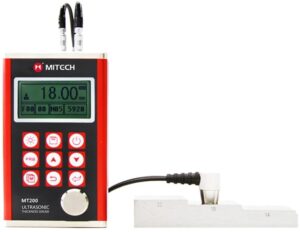 MT150 portable thickness gauge. Range: 0.75 to 350mm Resolution: 0.1mm Display: Selectable metric or imperial units. 4.5 Digit LCD with backlight. Velocity: 1000 – 9,999 m/s. Internal memory for 20 files with 99 values in each. Battery: Operated 2 x AA cells. Operating time more than 100 hours with backlight off. Built in calibration test block. Suitable for thickness measurements on all metals including steel, cast iron, aluminium, copper, also glass, ceramics and hard plastics. ...