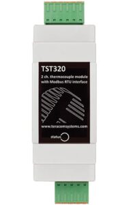 The TST320 is a Modbus RTU Thermcouple Module, designed for accurate monitoring of Type J, K, T, N, E, B, R, and S thermcouples. Up to 63 nodes can be connected back to a Modbus Master device. It features screwless terminal blocks for bot the thermocouple connection and Modbus Network for easy daisy-chaining on an RS485 Modbus RTU network, making it a robust solution for industrial temperature sensing. ...